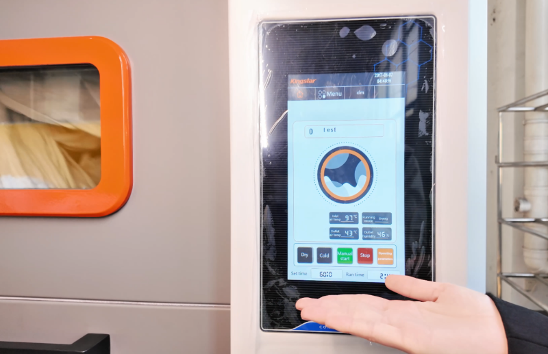 Traditionelle tørretumblere har generelt en fast tørretid. Dette kan forårsage overdreven tørring af tøjet og gøre det gult og stift eller stadig vådt. Nogle medarbejdere er bange for overdreven udtørring af deres tøj og bruger hænderne til at kontrollere tørringsgraden. Dette er ikke kun ineffektivt, men også risikabelt. Kingstar intelligente tørretumblere har et fugtkontrolsystem. Denne teknologi kan styre tørreprocessen med tørretid, temperatur og luftfugtigheden i luftudtaget. Det sikrer tørring af tøj og undgår spild af damp. Det er ikke nødvendigt for medarbejderne at teste, om det er tørt eller ej.