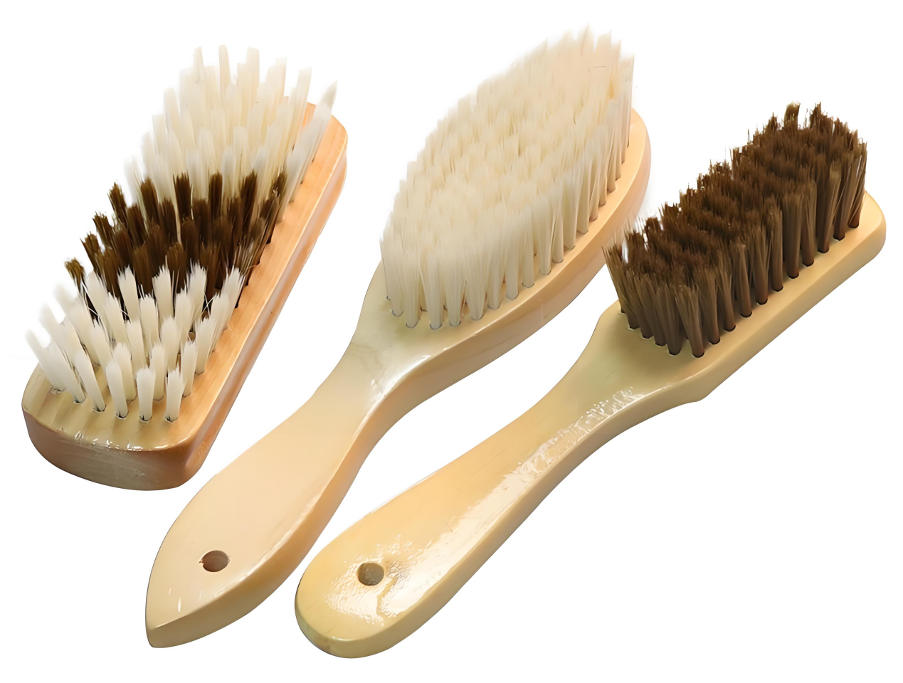 Børster are mainly used for tapping to loosen stains instead of scrubbing. They must be used separately according to the nature of the stain remover to prevent chemical reactions that could damage clothes or render stain removal ineffective.