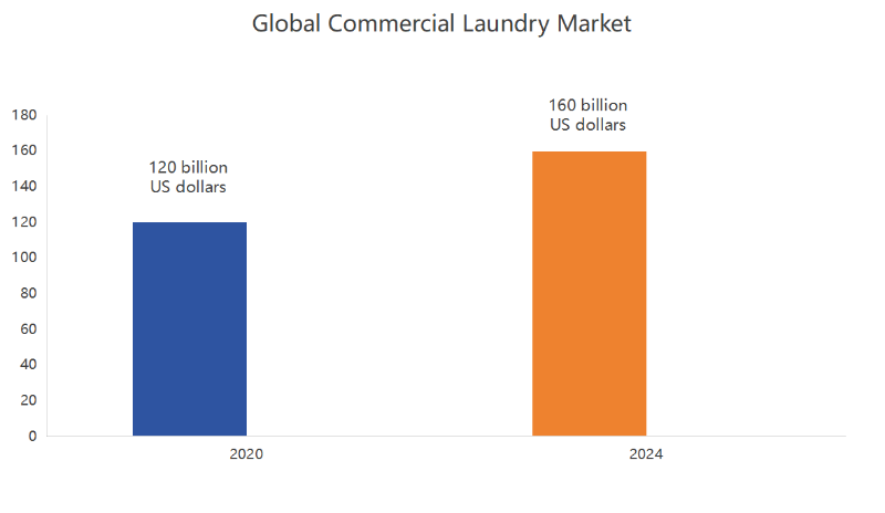 Det globale kommercielle vaskerimarked står over for muligheder for strukturel vækst. Data viser, at det globale kommercielle vaskemarked og det globale kommercielle tørremarked er steget fra 12 milliarder US-dollars til 16 milliarder US-dollars fra 2020 til 2024. CAGR er 7,4 %.