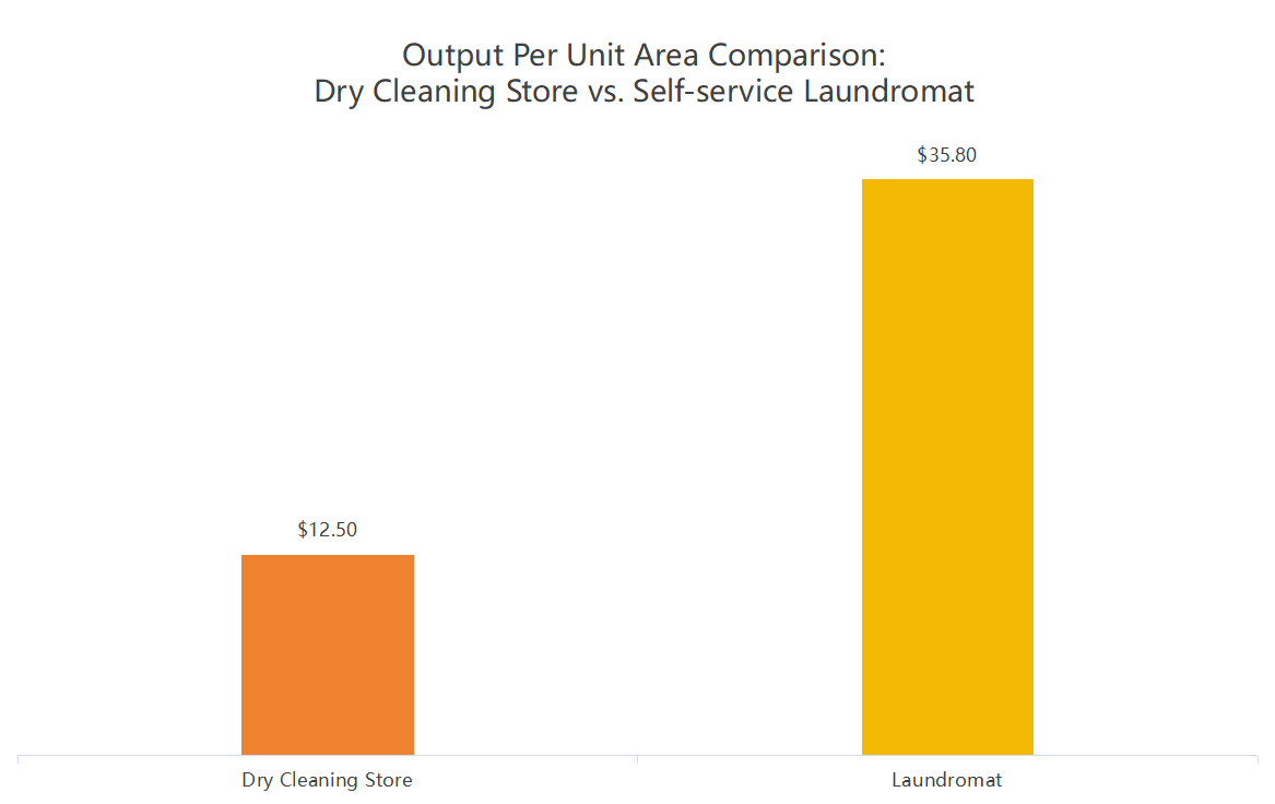 Selvbetjening vaskeri : $35,8 per kvadratmeter ($10.750 månedlig omsætning for en 30 kvadratmeter stor butik)