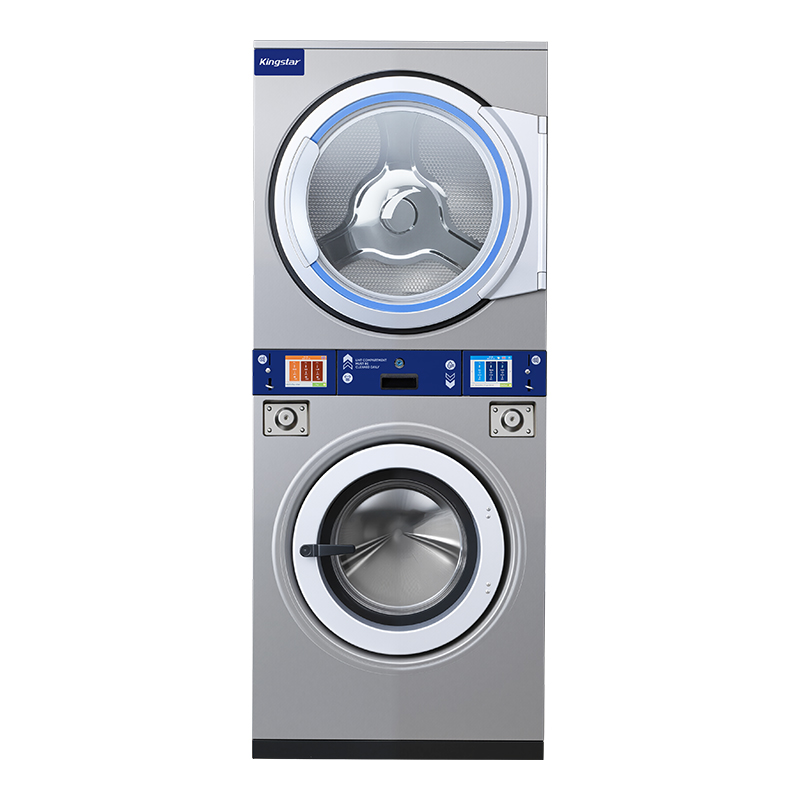 Kingstar møntbetjente stablet vaskemaskine-tørretumbler reducerer gulvpladsforbruget med op til 50 % sammenlignet med enkeltstående enheder, hvilket maksimerer ROI i pladsbegrænsede vaskerum. Perfekt til selvbetjente vaskerier, skoler, lejligheder, hoteller og mere.